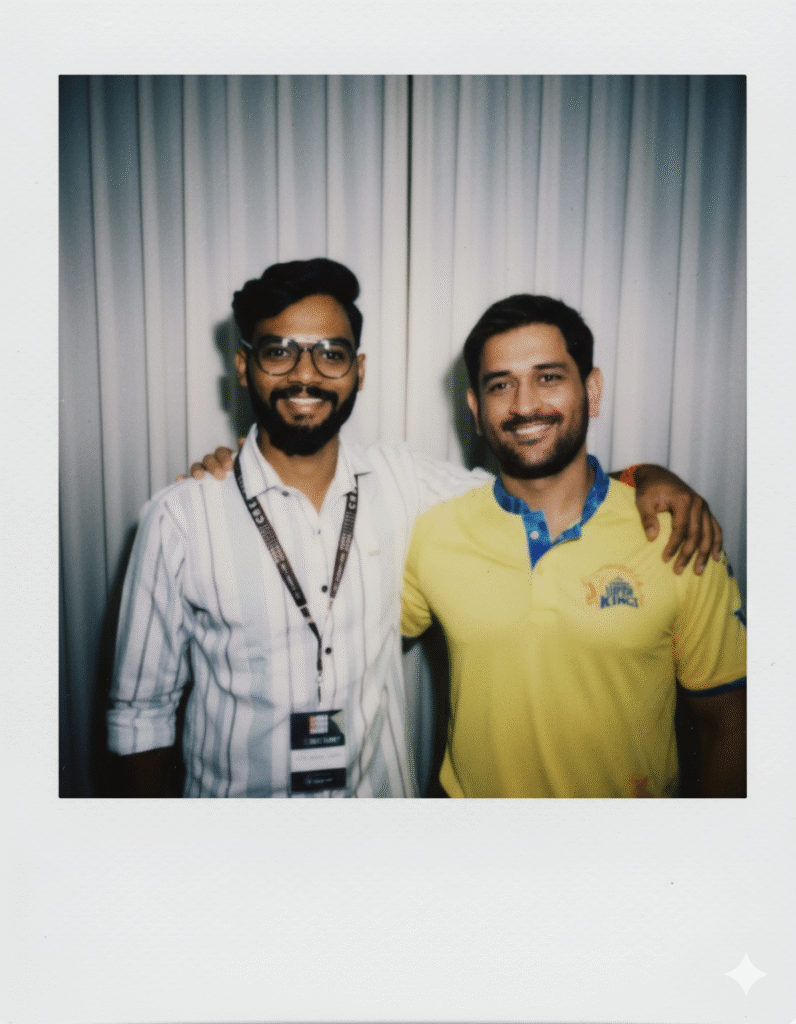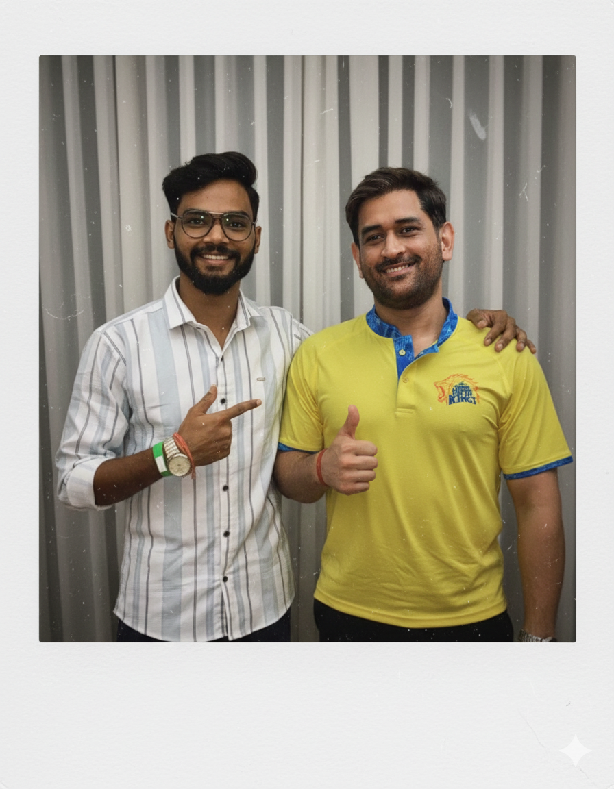 PROMPT #1 – a photo taken with a Polaroid camera. The photo should look like an ordinary photograph, without explicit subject or property. That photo should have a slight blur and a consistent light source, like a flash from the dark room, scattered throughout the photo. don’t change the face. change the background behind those who people with white curtains. With that boy and me make a cute poses. Make sure you don’t change the faces